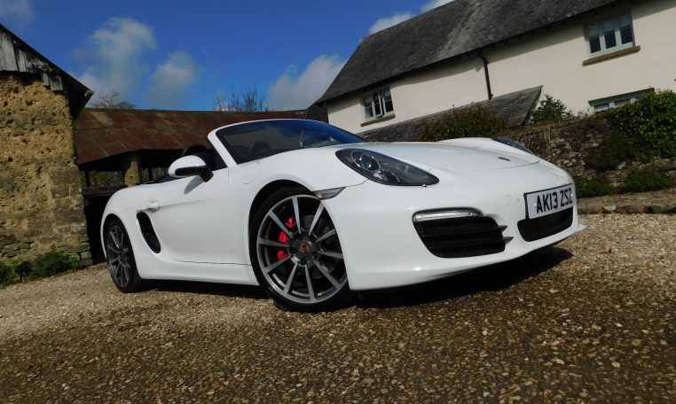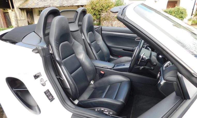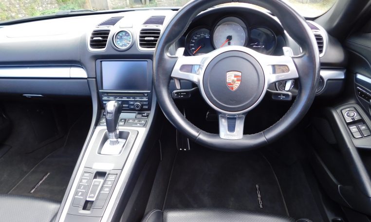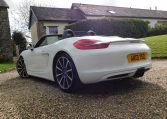 AK13ZSZ. 2013 Porsche 981 Boxster 3.4 S. 7-speed PDK, Carrara White, Black leather. 64,108 miles. Stunning car with massive options list including Sport Chrono (with Sport Plus mode), 18-way adaptive heated sports seats with headrest crests, 20″ Carrera Classic wheels, PDLS bi-xenon headlights with Dynamic Cornering, PASM adaptive dampers, PADM active engine mounts, PSE switchable sports exhaust, PTV+ Limited Slip Differential, PCM3 with satnav, BOSE sound system, extended leather, cruise control, Power Steering Plus, front and rear ParkAssist, auto dimming rear view and exterior mirrors, rain sensing wipers. Great service history with 9 stamps. PDK service completed in July 2023 at 45,956 miles by RSJ. A fabulous car with superb performance. £28,495