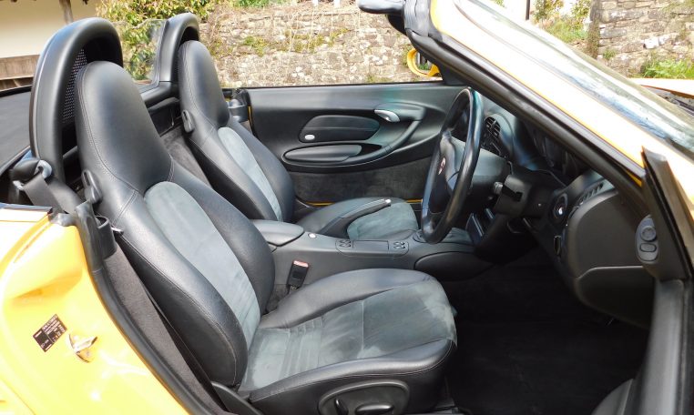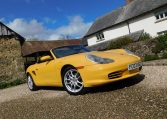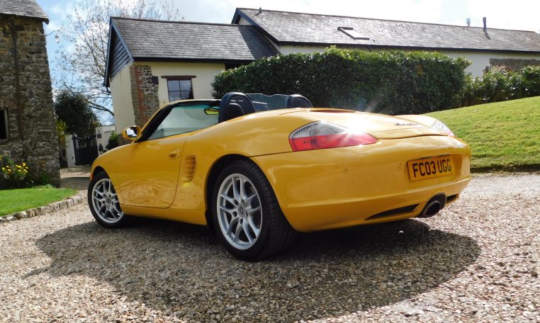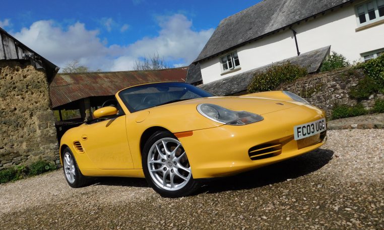FC03UGG. 2003 Porsche 986 Boxster 2.7. 5-speed Manual, Speed Yellow, black Alcantara interior. 44,914 miles from new. A car we took in part exchange with a couple of paint issues to sort out and only partial service history. Drives well, we have replaced rear brake discs and pads, exhaust flange bolts, fitted new spark plugs and coil packs, given it a Minor service and brake fluid change, and a new MOT. Good value, low mileage Boxster in one of the best colours, for further improvement cosmetically. £7,495