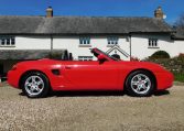 Here we have a stunning early Boxster 2.7 in Guards Red, which has covered an amazingly low 16,118 miles from new in the hands of just 3 owners, 2 of whom were father and son. W772VHB was first registered in the UK on 16th June 2000, having been originally collected from Wittebrug Porsche in Voorburg, Netherlands on 30th May 2000. Wittebrug Porsche was the world’s first Porsche dealer, having started selling Porsche cars in 1950! Ordering a UK-spec Porsche from a European dealer was quite commonplace at the turn of the century, as UK dealers struggled to get enough cars to satisfy demand.