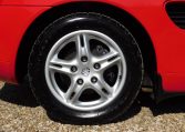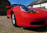 The car remains in stunning original condition throughout, our preparation for sale including a Major service, new spark plugs and auxiliary drive belt, brake fluid change and some clamps and fixings on the exhaust. It drives like a 2 year old car, feeling nice and tight with lovely supple suspension. The Guards Red paintwork is bright and almost unblemished, and the plastics and headlights retain their factory fresh look with no fading or discolouration. The interior is like new, likewise the black fabric hood which still has it’s original plastic rear screen in good order. These early cars have a few features not found on the later models – light grey luggage compartment carpets, a scuttle vent and levers for the two boot releases. This car was also built at the Porsche factory in Stuttgart, not by Valmet in Finland like the majority of Boxsters from 2000 onwards.